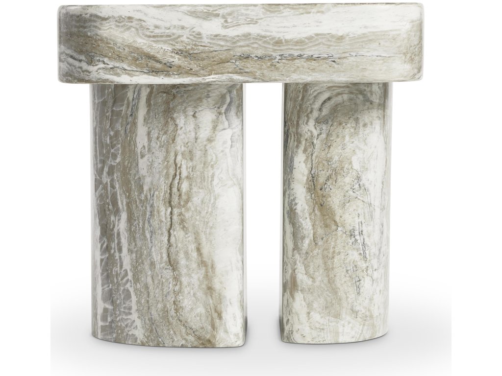 Product Description: Totemic shapes support the top of the Arcadia side table for a beautiful modern primitive look. Faux stone offers lovely striations in Kalta finish.