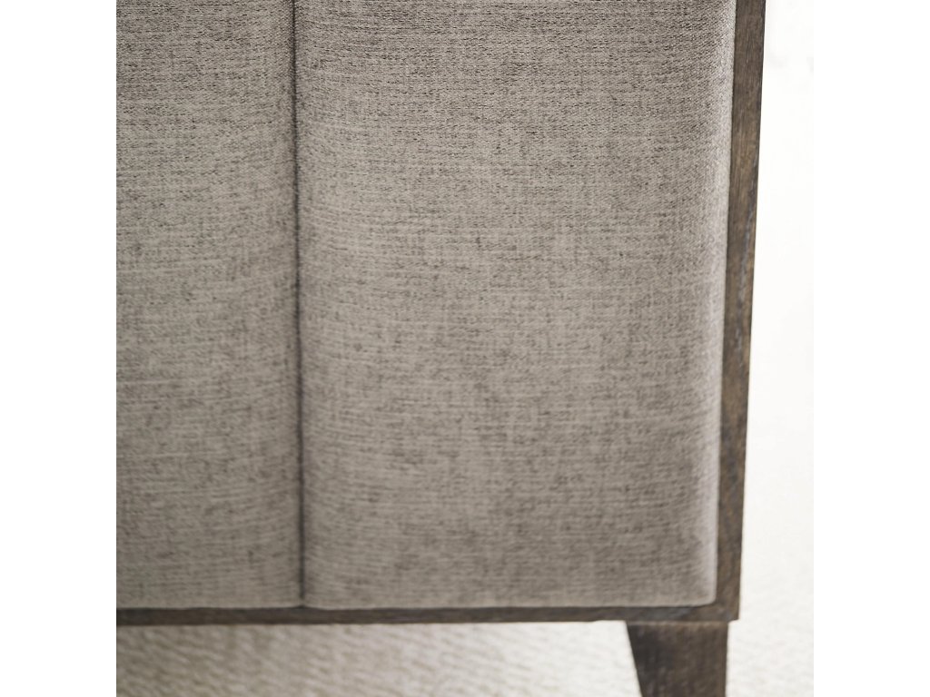 Product Description: With clean lines and casual finishes, the Linea upholstered panel bed delivers rustic modern style with a high level of sophistication. The wood frame and side panels feature a Cerused Charcoal finish that complements the soft neutral tone of the fabric on the headboard and footboard. The contrasting textures add visual interest, while symmetrical vertical channeling completes the contemporary look.