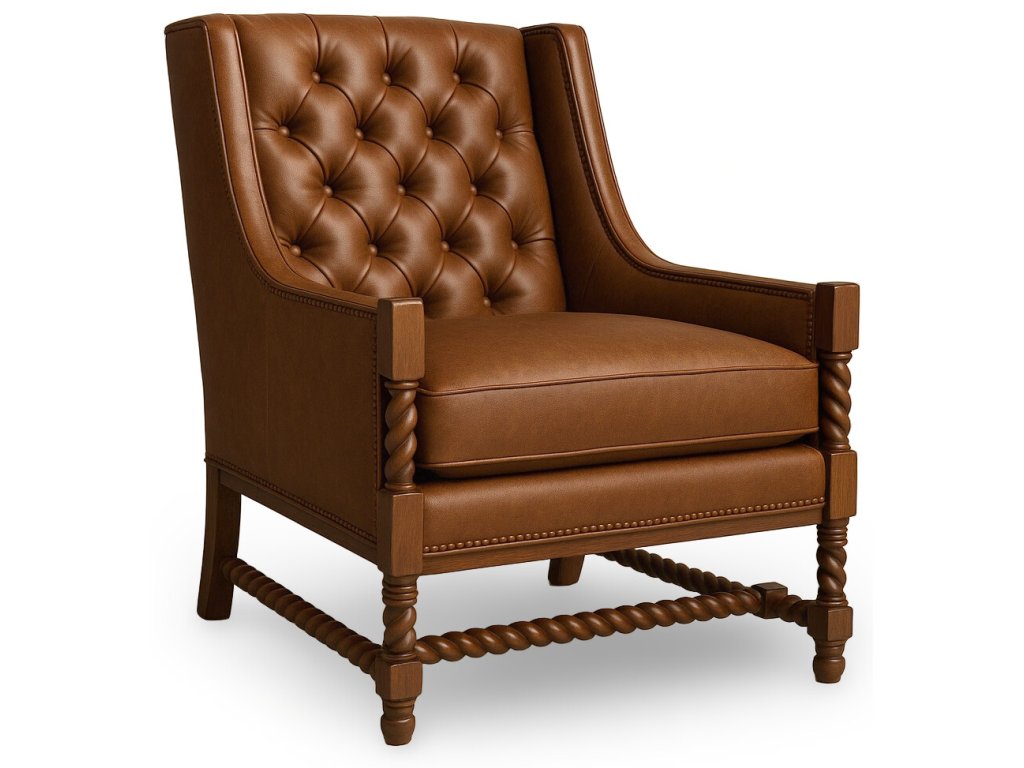 The Carolina Custom Leather Living Room Woodford Chair 1412 is available in the Cedar Park, TX area from Crescent House Furniture. Please request information here or call our store to verify availability.